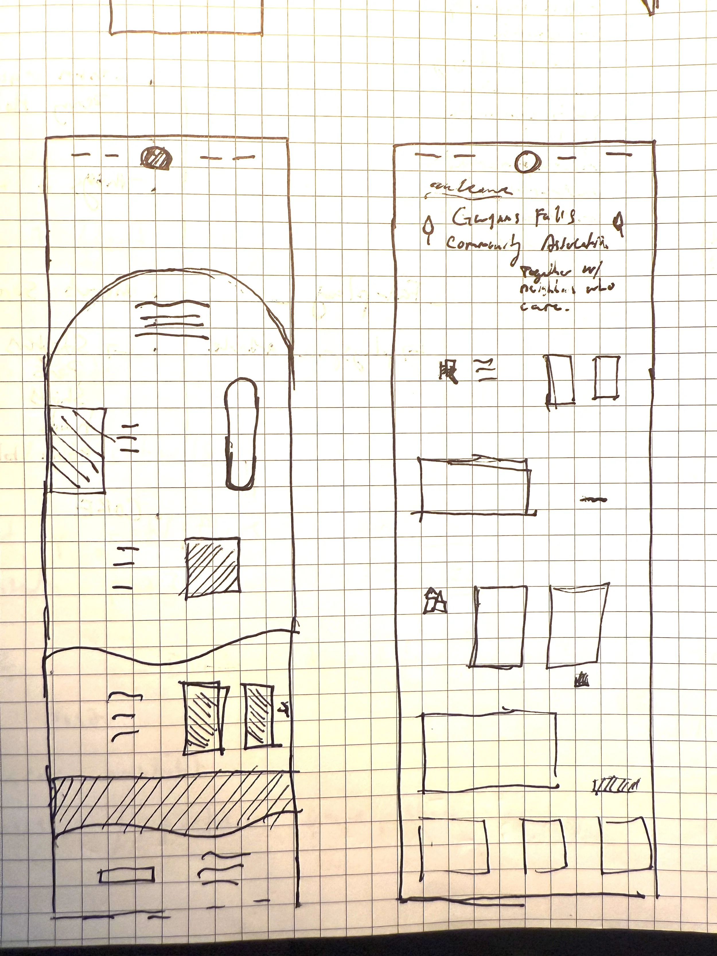 I met with Chris Schulze, president of the Gwynns Falls Community Association, and we walked through the community. Chris showed me various houses, introduced me to community members, and highlighted the community features such as Mighty Park and the community garden. I used this community walk-through as the concept for the website design. With a cool blue arching line, the community flows along the Gwynns Falls stream. As you scroll the website, you pass custom illustrations—various houses and locations, such as the park and garden.